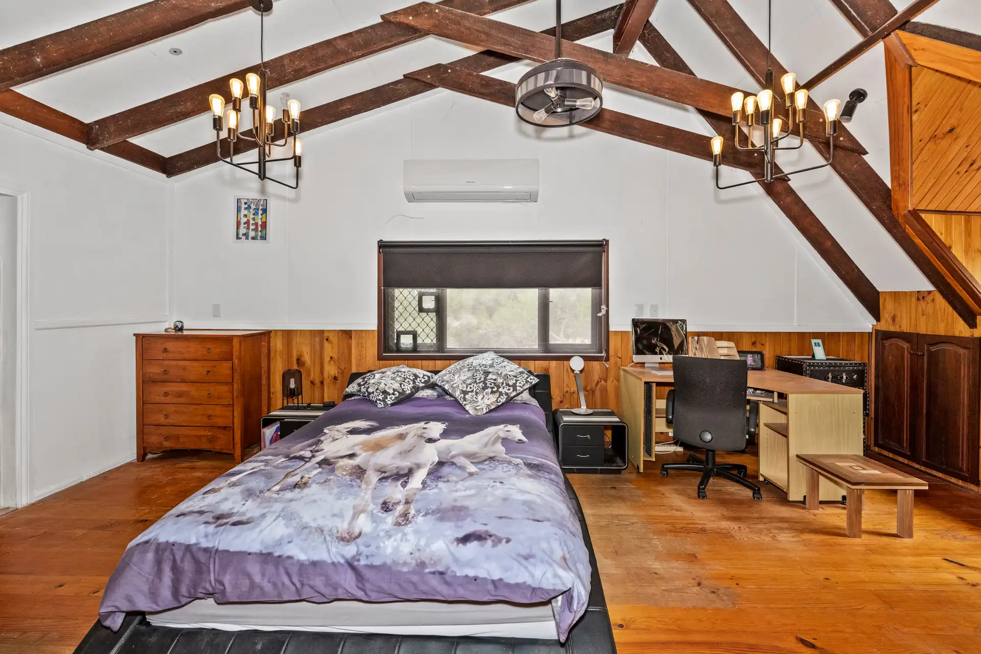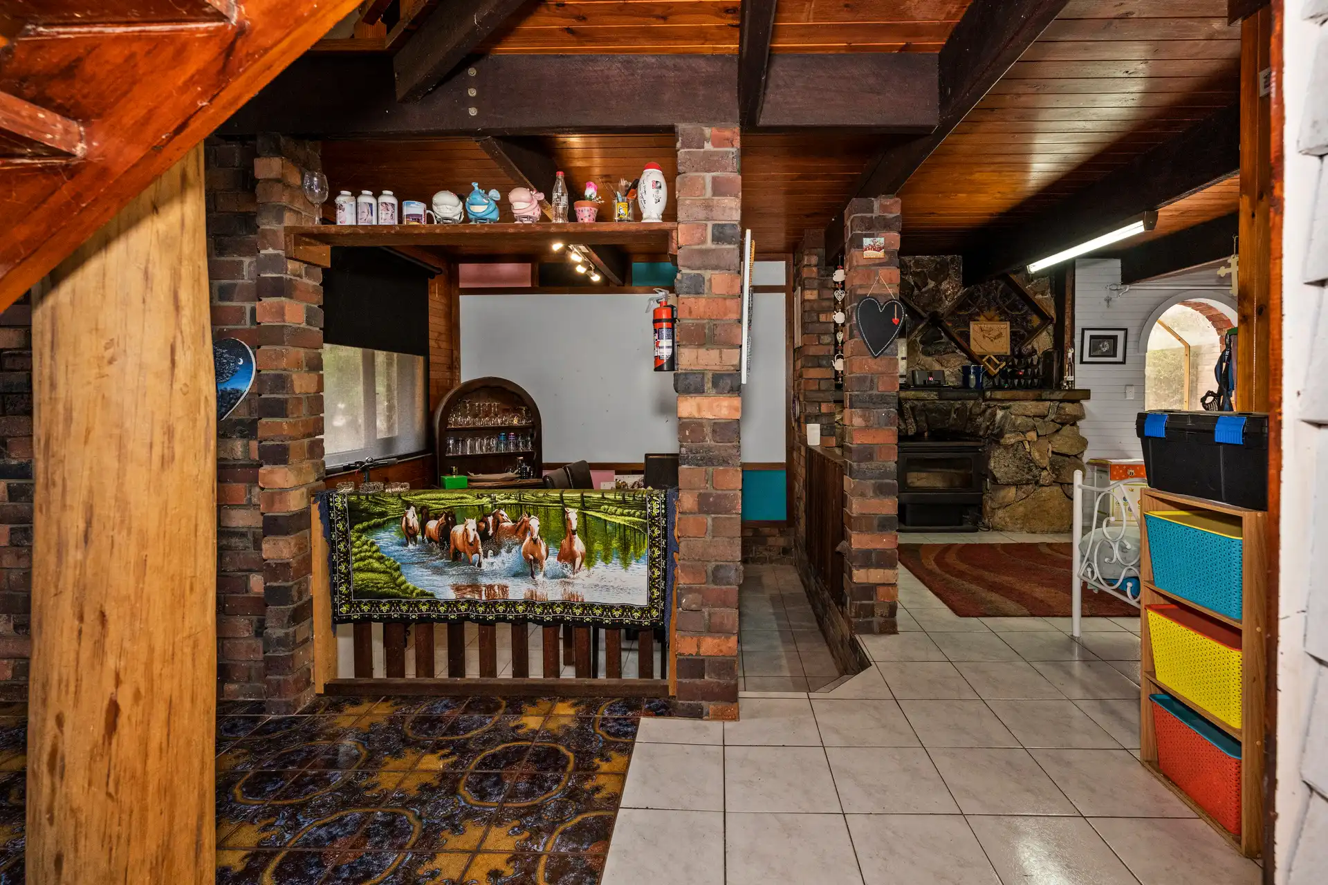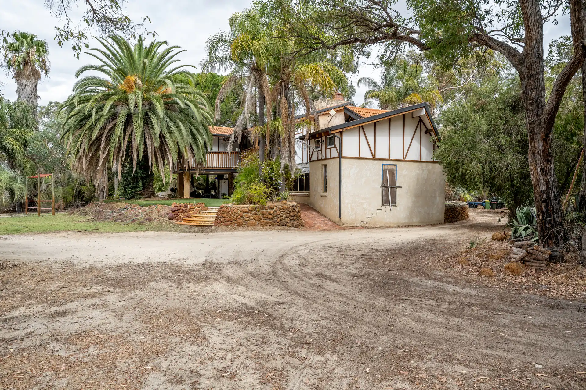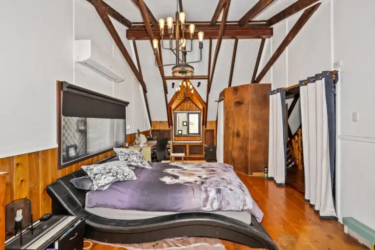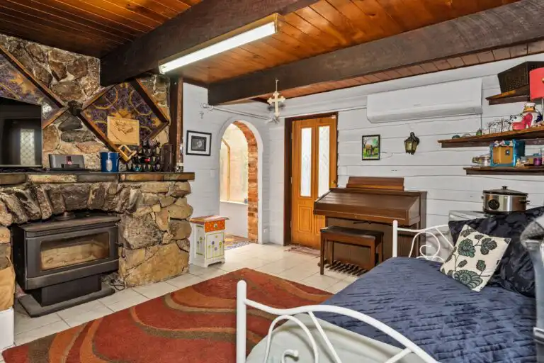 Nestled amidst 5 acres of quiet bushland, this captivating two-story character home exudes warmth and individuality. As you follow the tree-lined private driveway, the home reveals its rich character—a harmonious blend of recycled timbers, stone, and brickwork that sets it apart.