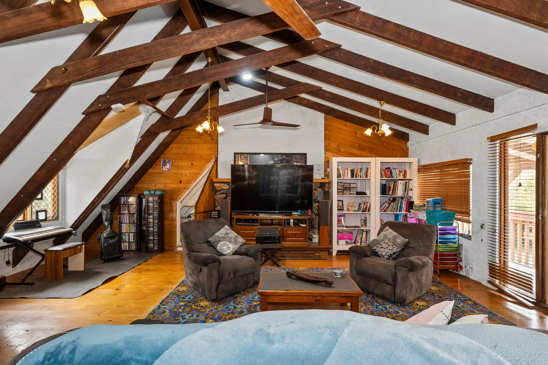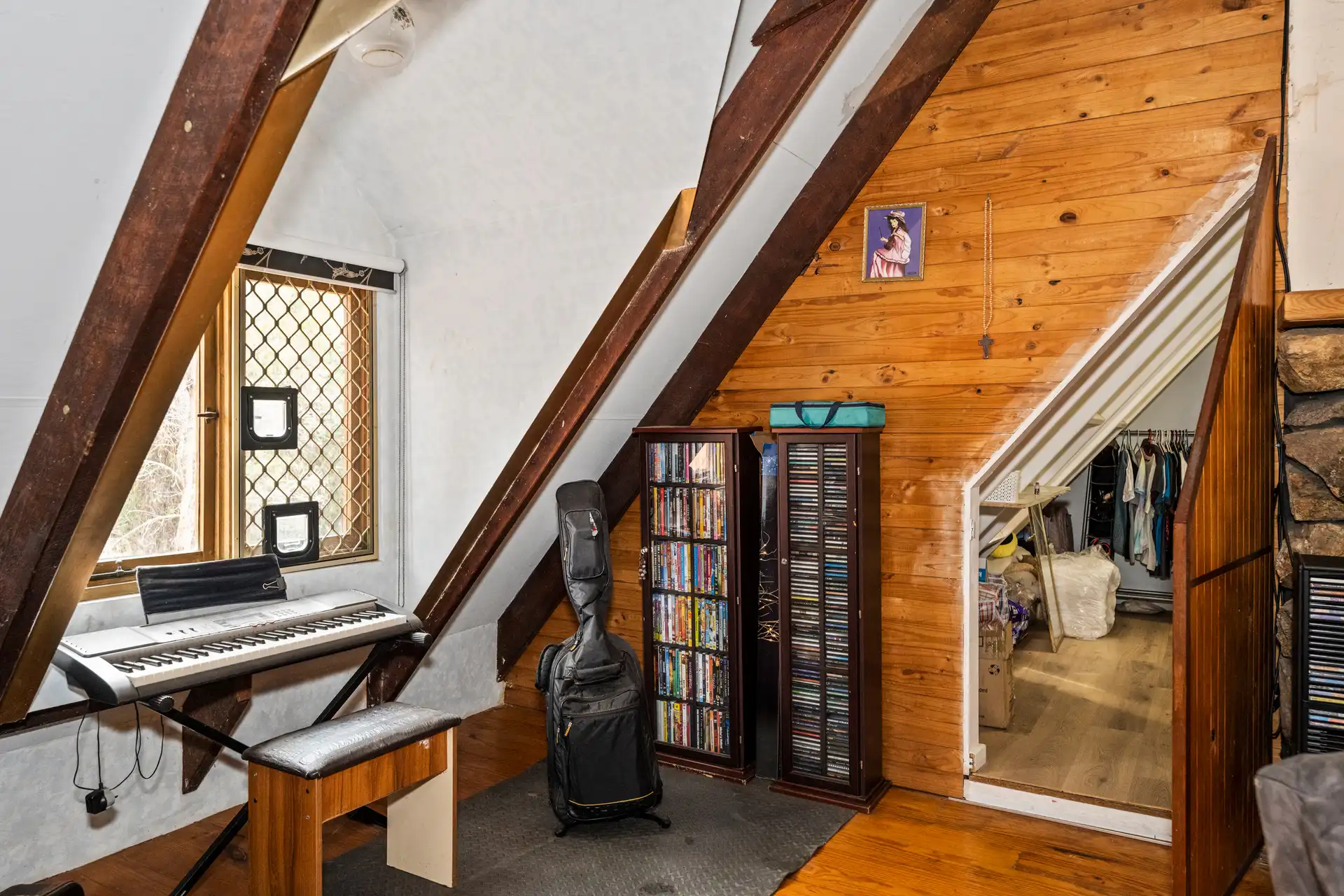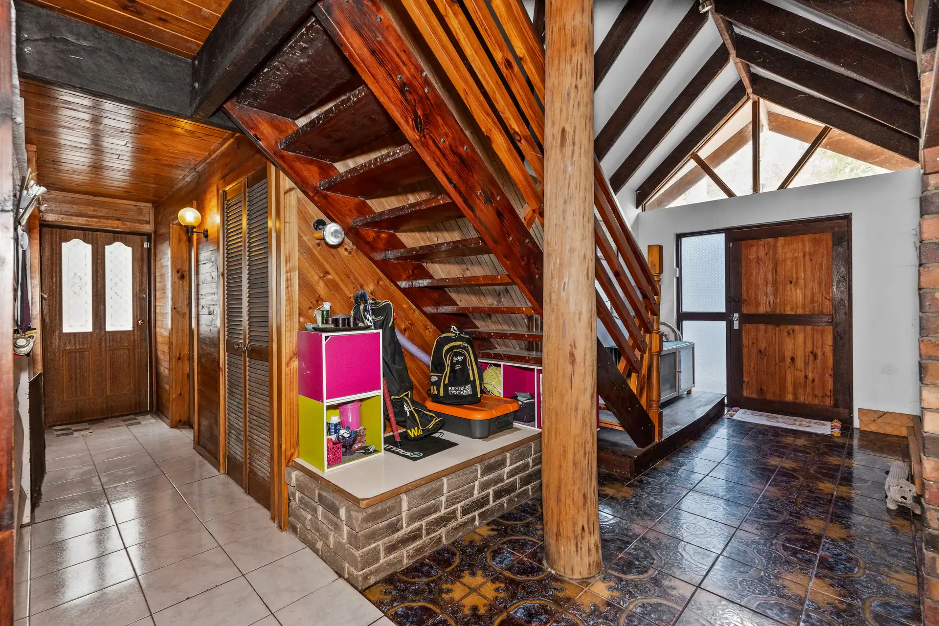 Nestled amidst 5 acres of quiet bushland, this captivating two-story character home exudes warmth and individuality. As you follow the tree-lined private driveway, the home reveals its rich character—a harmonious blend of recycled timbers, stone, and brickwork that sets it apart.