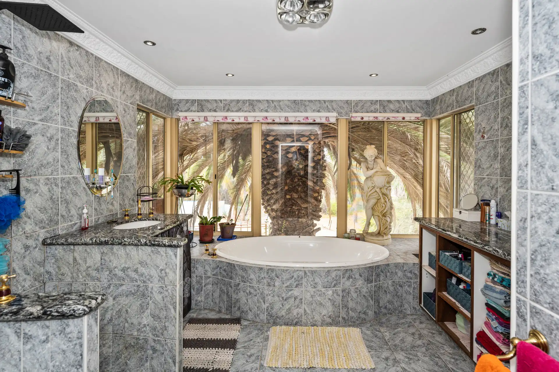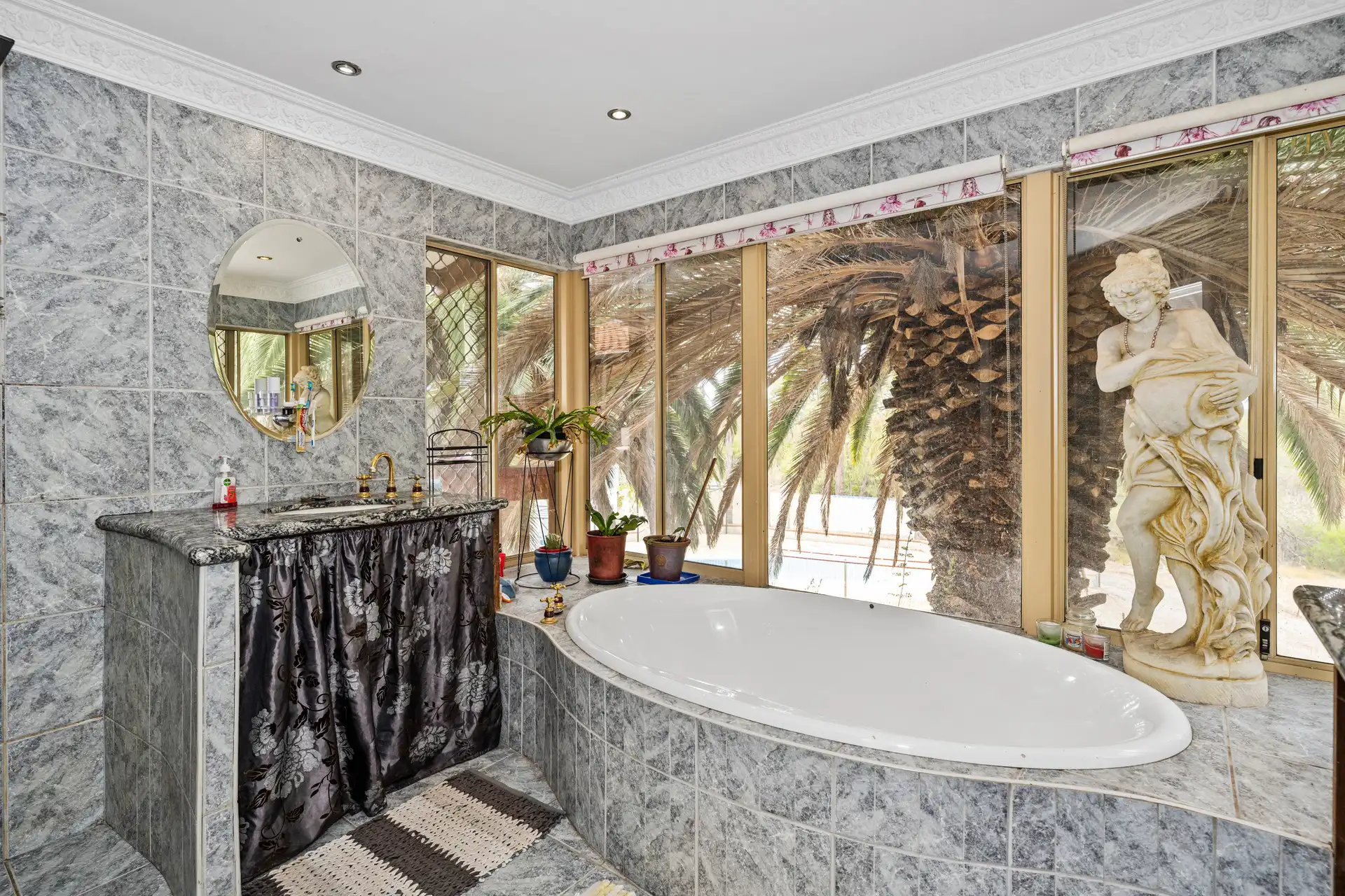 Outdoor Oasis: Established gardens feature native plants and majestic palms.