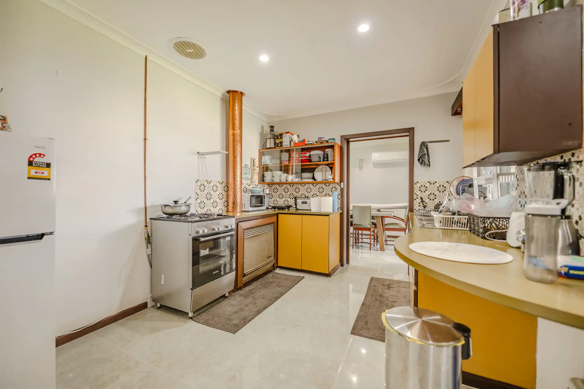 The spacious lounge and family area has a cosy gas-log fireplace and reverse cycle air-conditioning for year-round comfort. The cheerful kitchen will be a pleasure for prepping meals and for gathering in the heart of the home with lots of cabinet and bench space. A brand new stainless steel free standing gas oven has just been installed. It has a pretty window to the garden and a breakfast bar for enjoying a chat or a coffee. The dining room has plenty of space to enjoy meals with your family and friends. Plus easy access to the outdoor area and big backyard via sliding doors. The covered alfresco entertainment area overlooks the fenced backyard. This is a perfect spot to relax and unwind or enjoy a BBQ.