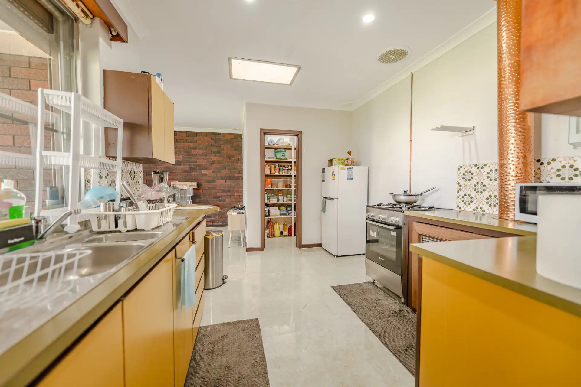 You’ll love the original charm with its high featured ceilings, brick feature walls, timber window frames and doors plus delightful archways that add character and warmth. All the bedrooms have wardrobes and the master bedroom has a large walk-in robe. The main bedroom and one of the minor bedrooms have recently had reverse cycle air-conditioners installed. The main areas of the home, and the bedrooms, have just been fitted out with beautiful new tiles, making this home very easy to clean. The interior walls have been freshly painted, as have the roof tiles.